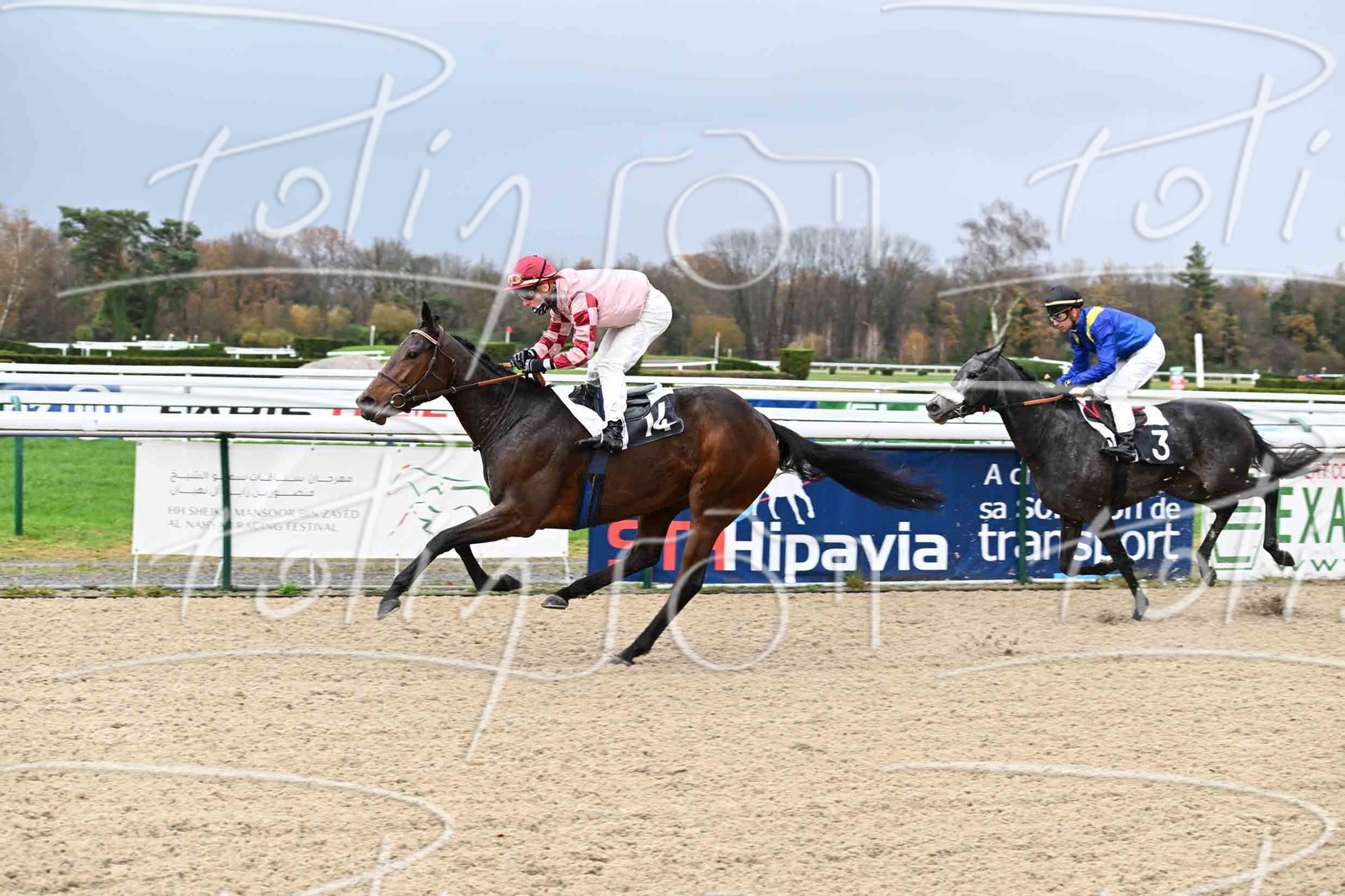 43/95 cheval ;pur ;sang;galopeur;sauteur ;obstacles ;plat;fibree ;gazon;courses;hippodrome;pont ;long ;jockey